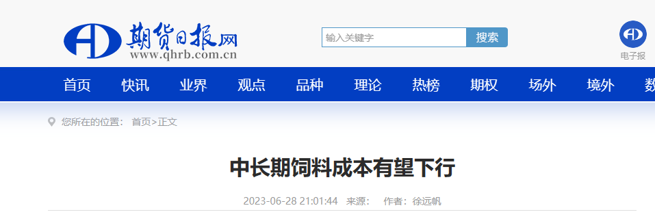 中長期飼料成本有望下行...